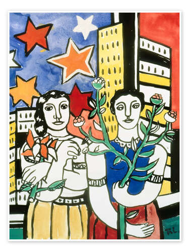 Poster Zwei Figuren mit Blumen