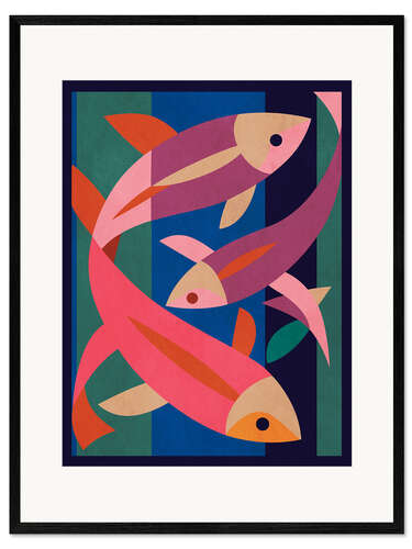 Posterlounge   Wandbilder   Lila   ThingDesign   Gerahmter Kunstdruck Abstraktes Fisch-Trio