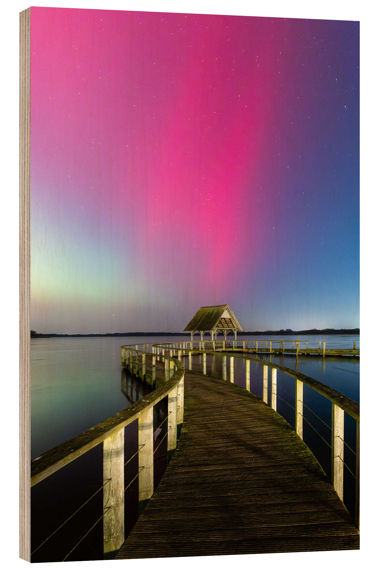 Posterlounge   Wandbilder   Lila   Nils Steiner   Holzbild Magische Polarlichter über dem Hemmelsdorfer See