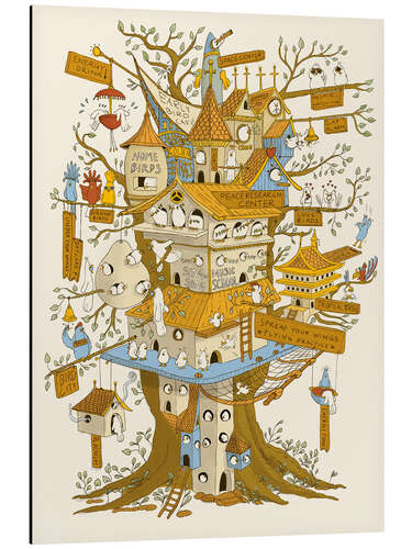 Alubild Vogelstadt Illustration voller Details für Vogelliebhaber