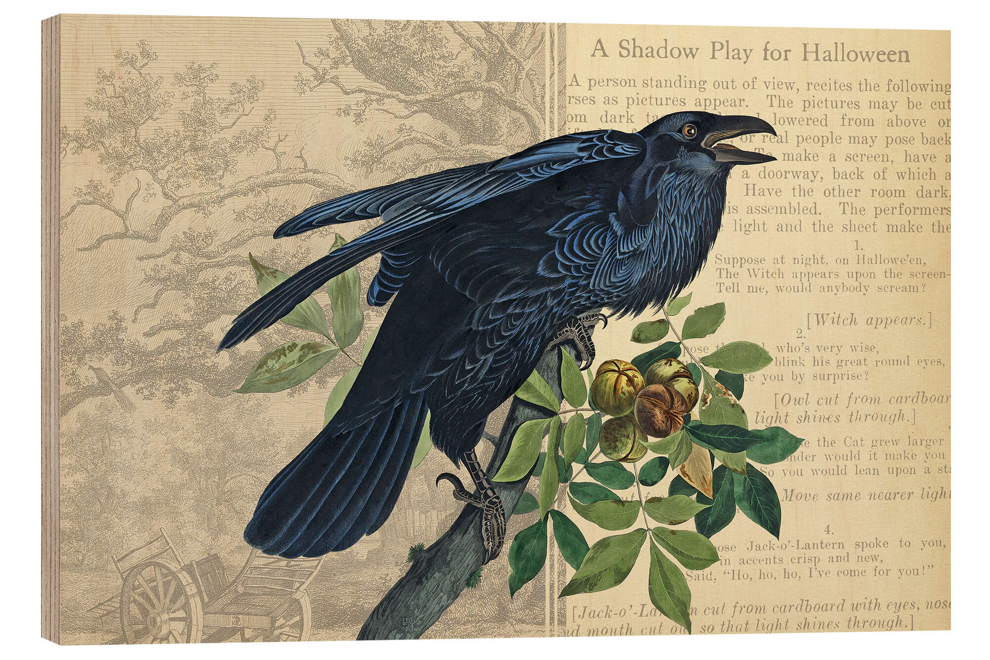 Posterlounge   Wandbilder   Illustration   Collage   Holzbild Halloween-Rabe