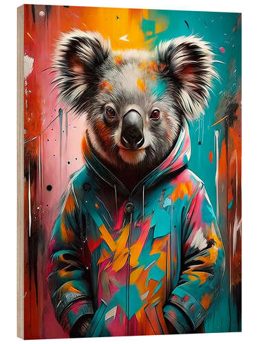 Posterlounge   Wandbilder   Digitale Kunst   nobelart   Holzbild Graffiti-Koala im bunten Hoodie