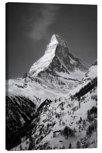 Leinwandbild Gipfel des Matterhorn mit Schnee im Winter, Schweiz