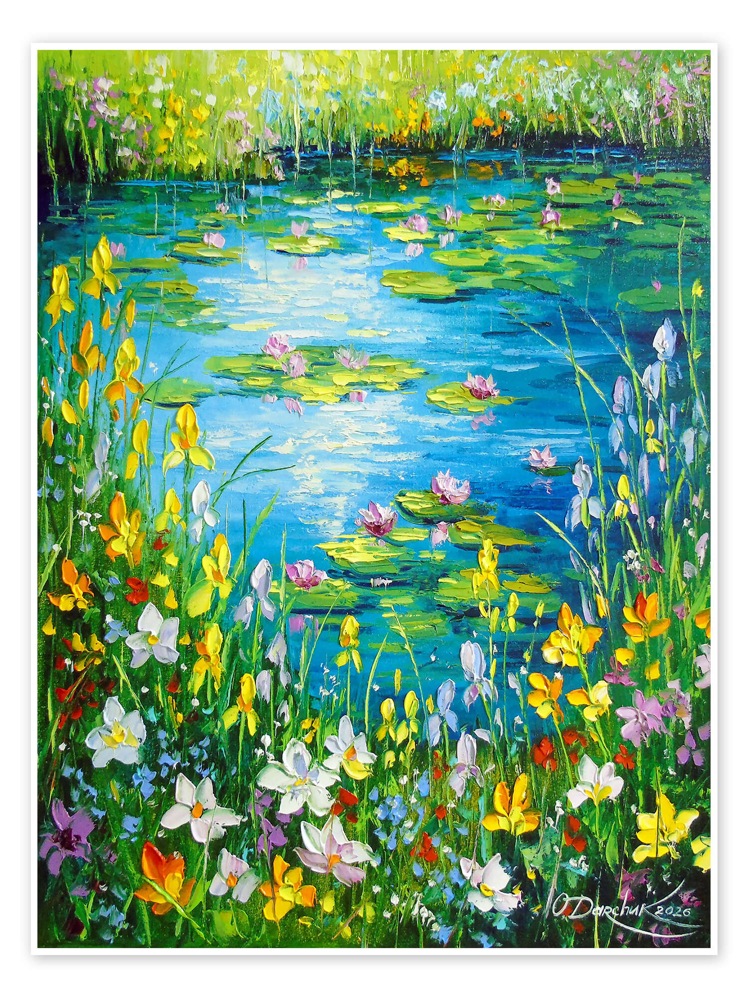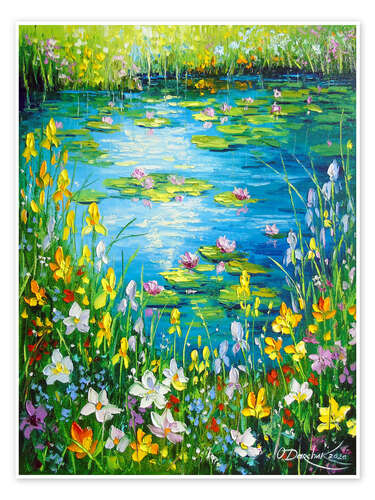 Poster Teich am blühenden Ufer