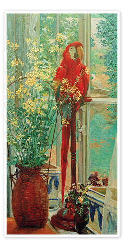Posterlounge   Wandbilder   Türkis   Heinrich Vogeler   Poster Blumenstilleben mit Papagei am Fenster, 1906