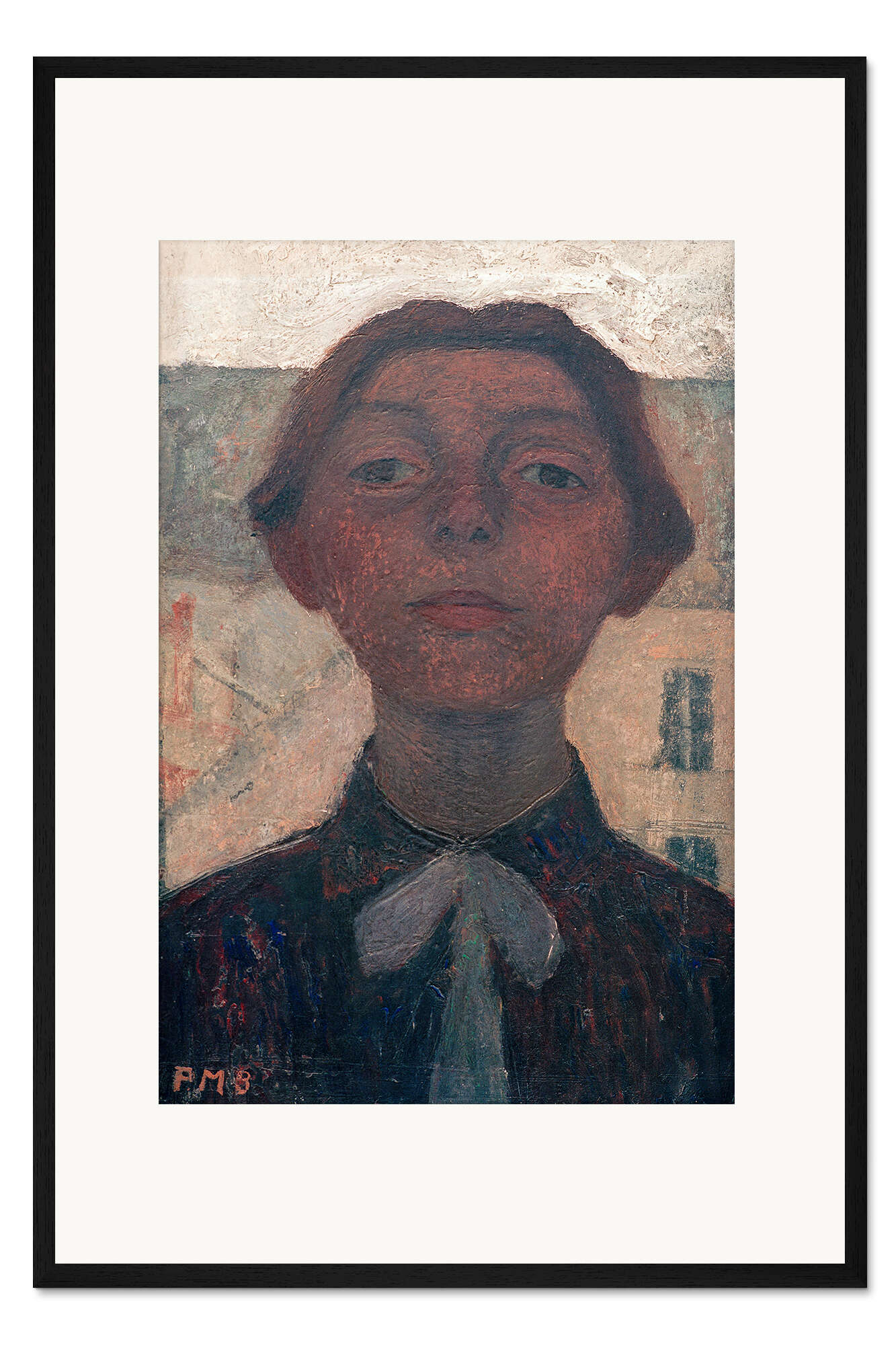 Posterlounge   Wandbilder   Menschen   Frauen   Paula Modersohn-Becker   Gerahmter Kunstdruck Selbstporträt vor Fensterblick auf Pariser Häuser, 1900