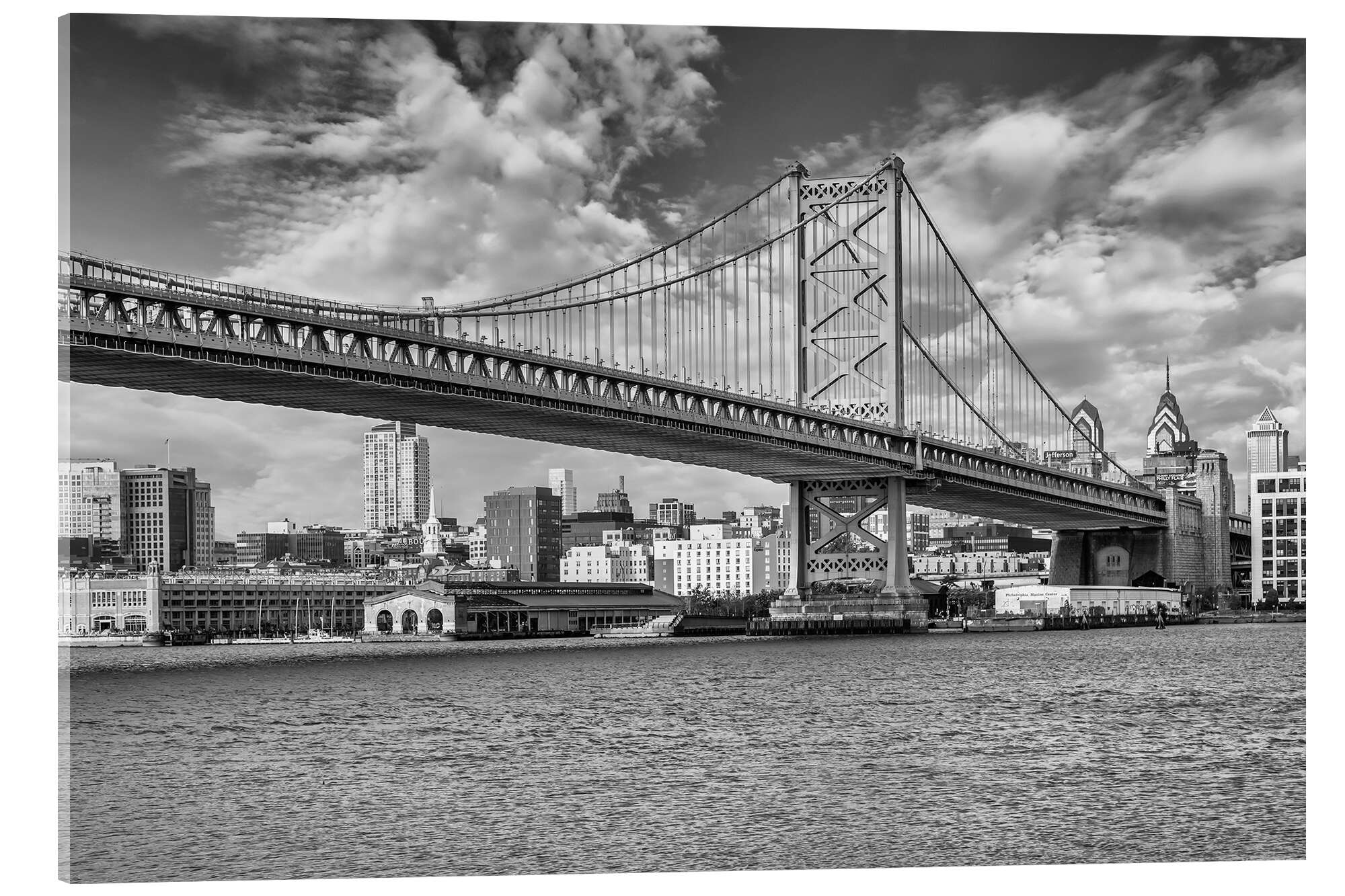 Acrylglasbild Skyline von Philadelphia mit der Benjamin-Franklin-Brücke