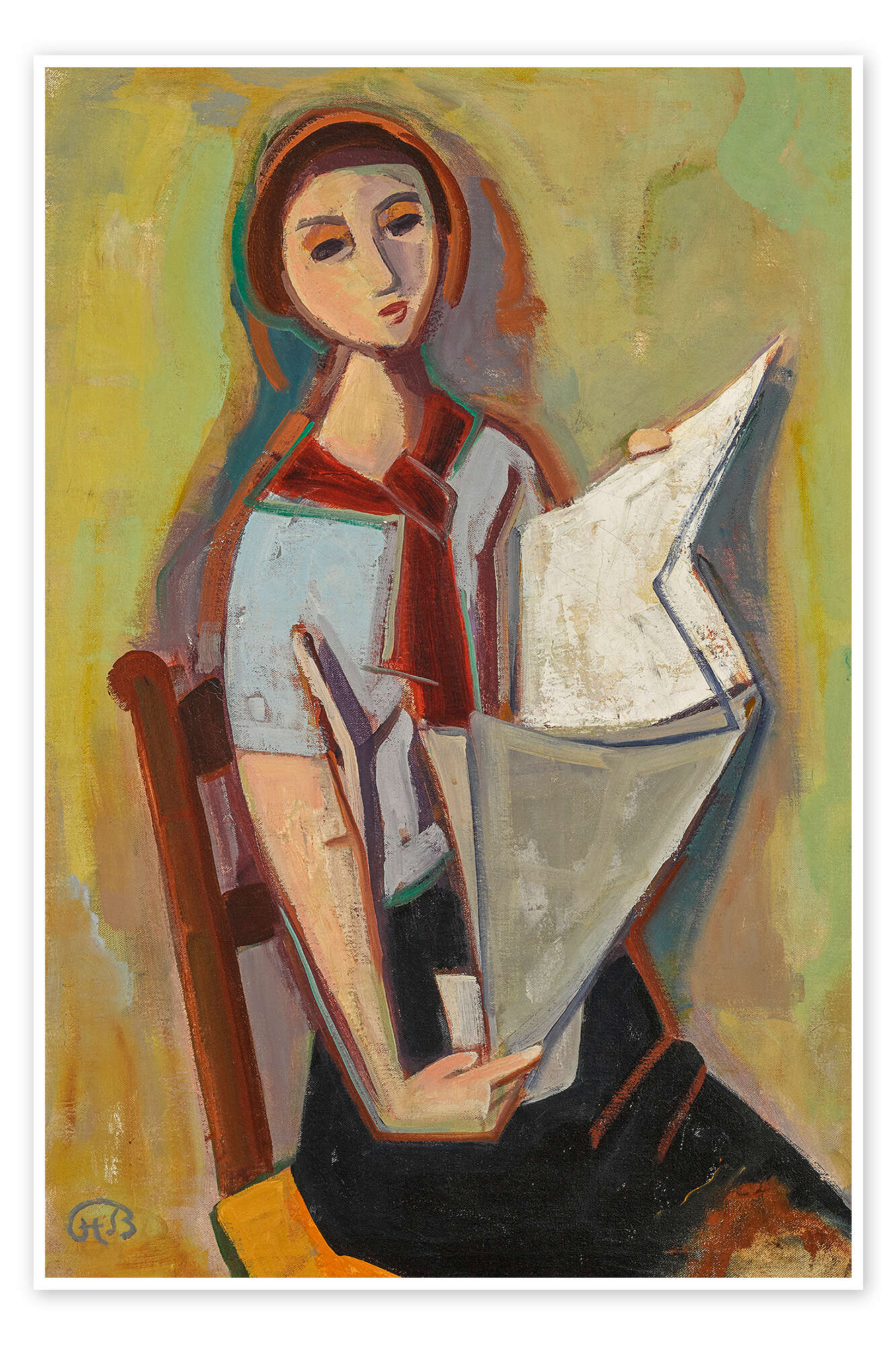 Poster Junge Frau liest Zeitung
