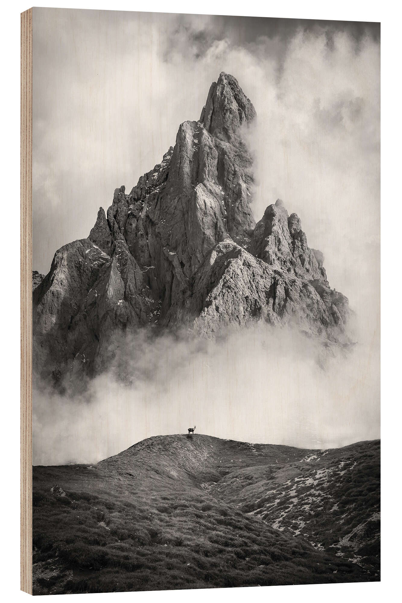 Posterlounge   Wandbilder   Schwarz-Weiß   Christian Müringer   Holzbild Punta Rolle am Passo Rolle, Dolomiten, Südtirol