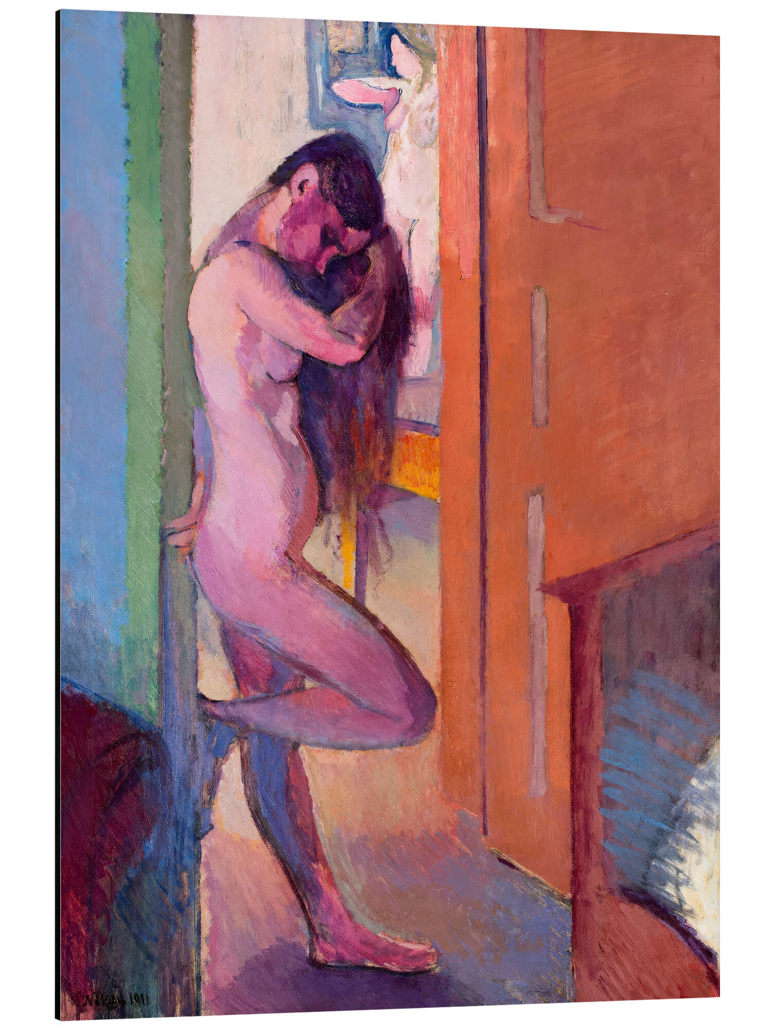 Alubild In der Tür stehender weiblicher Akt, 1911