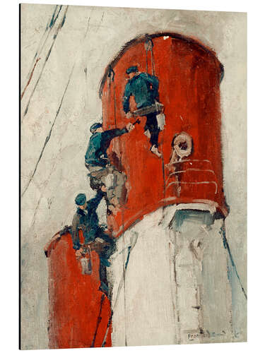 Posterlounge   Wandbilder   Rot   Leonhard Sandrock   Alubild Schornstein eines Hamburg-Süd Dampfers wird angemalt