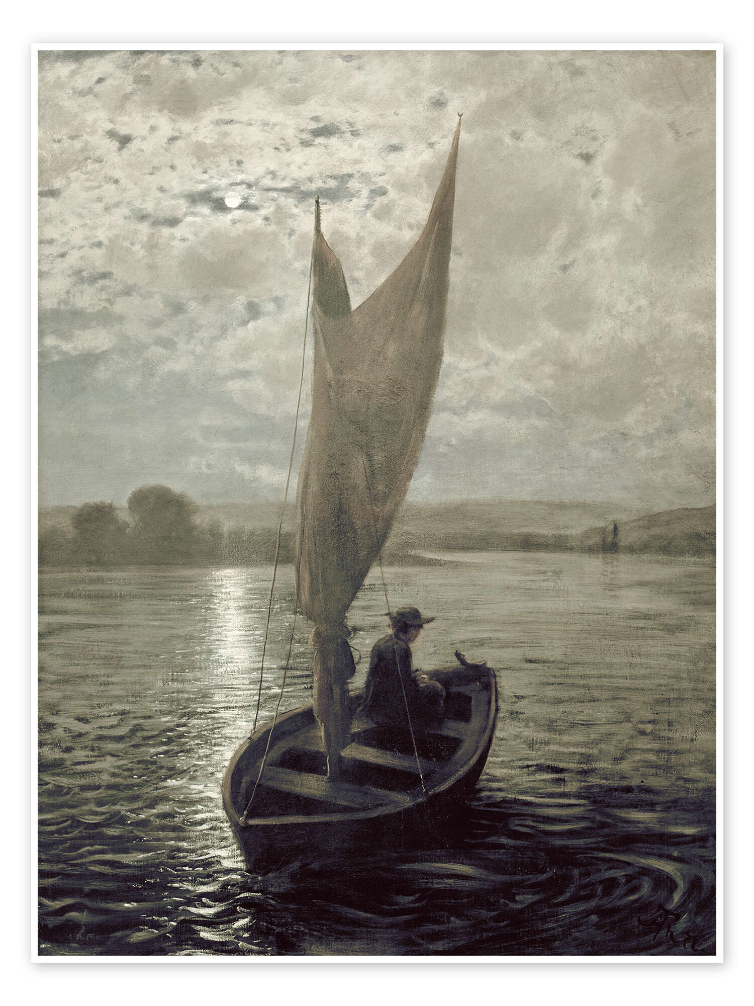 Posterlounge   Wandbilder   Natur   Meere   Hans Thoma   Poster Segelboot im Mondschein, 1872