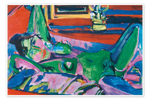 Poster Grüner Akt liegend - Albert Müller