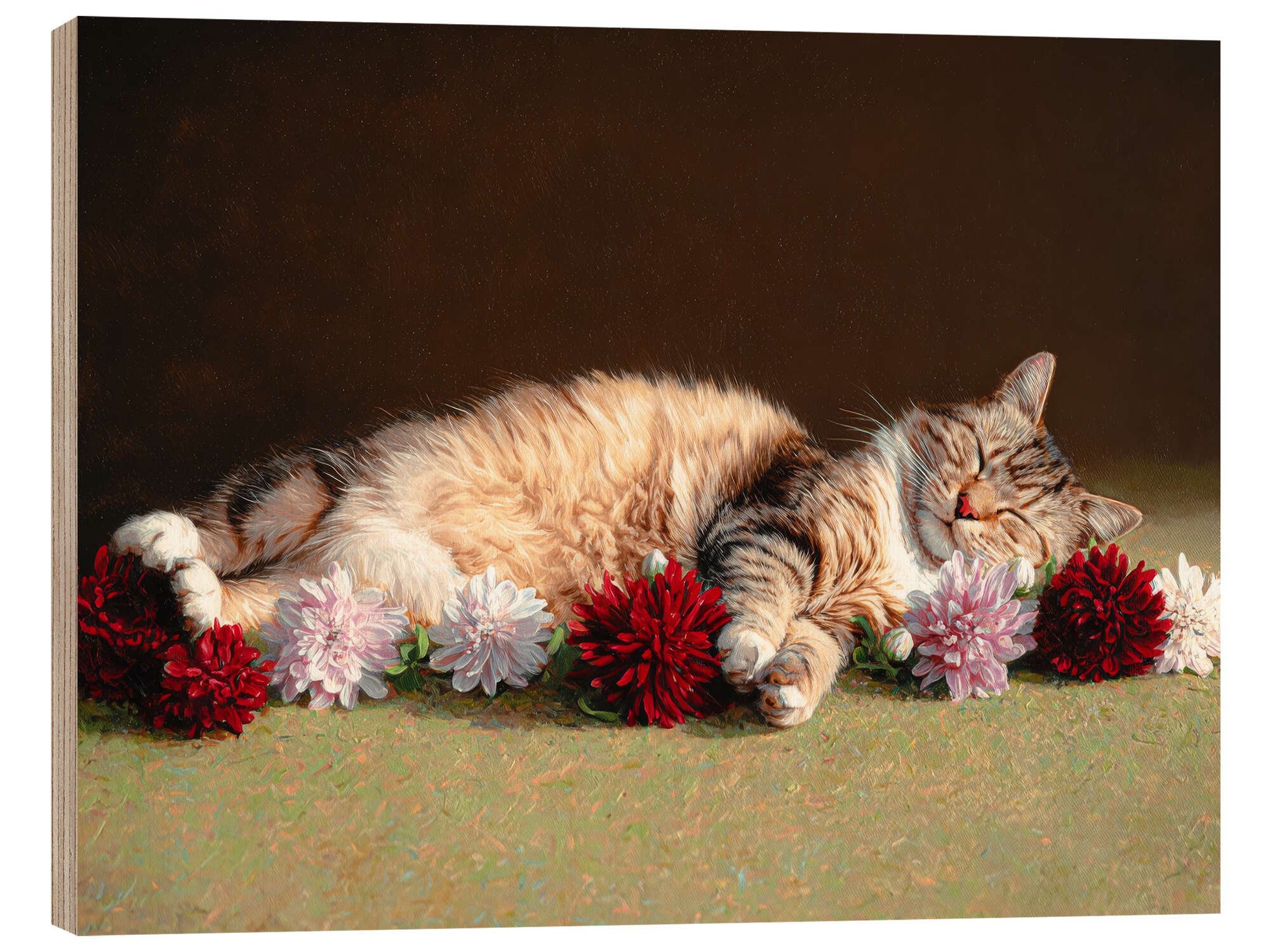 Posterlounge   Wandbilder   Tiere   Haustiere   Katzen   DejaReve   Holzbild Geborgen in einem Blumenbeet
