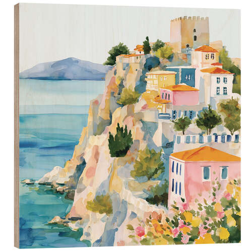 Posterlounge   Wandbilder   Malerei   Aquarell Malerei   Niphion   Holzbild Antalya zwischen Blumen