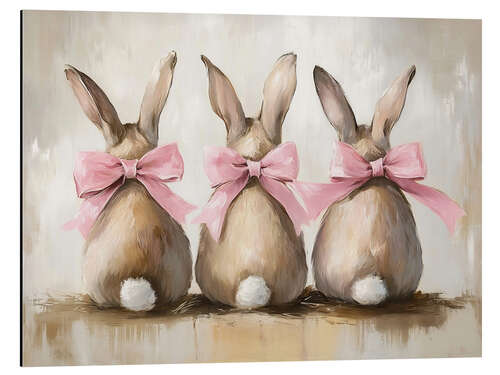 Posterlounge   Wandbilder   Tiere   Wildtiere   Hasen   TAlex   Alubild Niedliche Osterhasen mit rosa Schleife