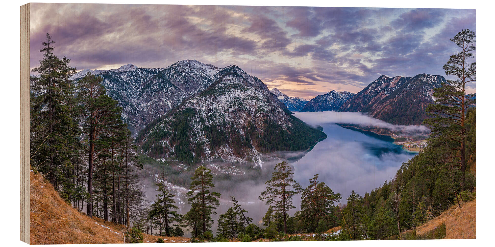 Posterlounge   Wandbilder   Blau   Denis Feiner   Holzbild Hoch über dem Plansee