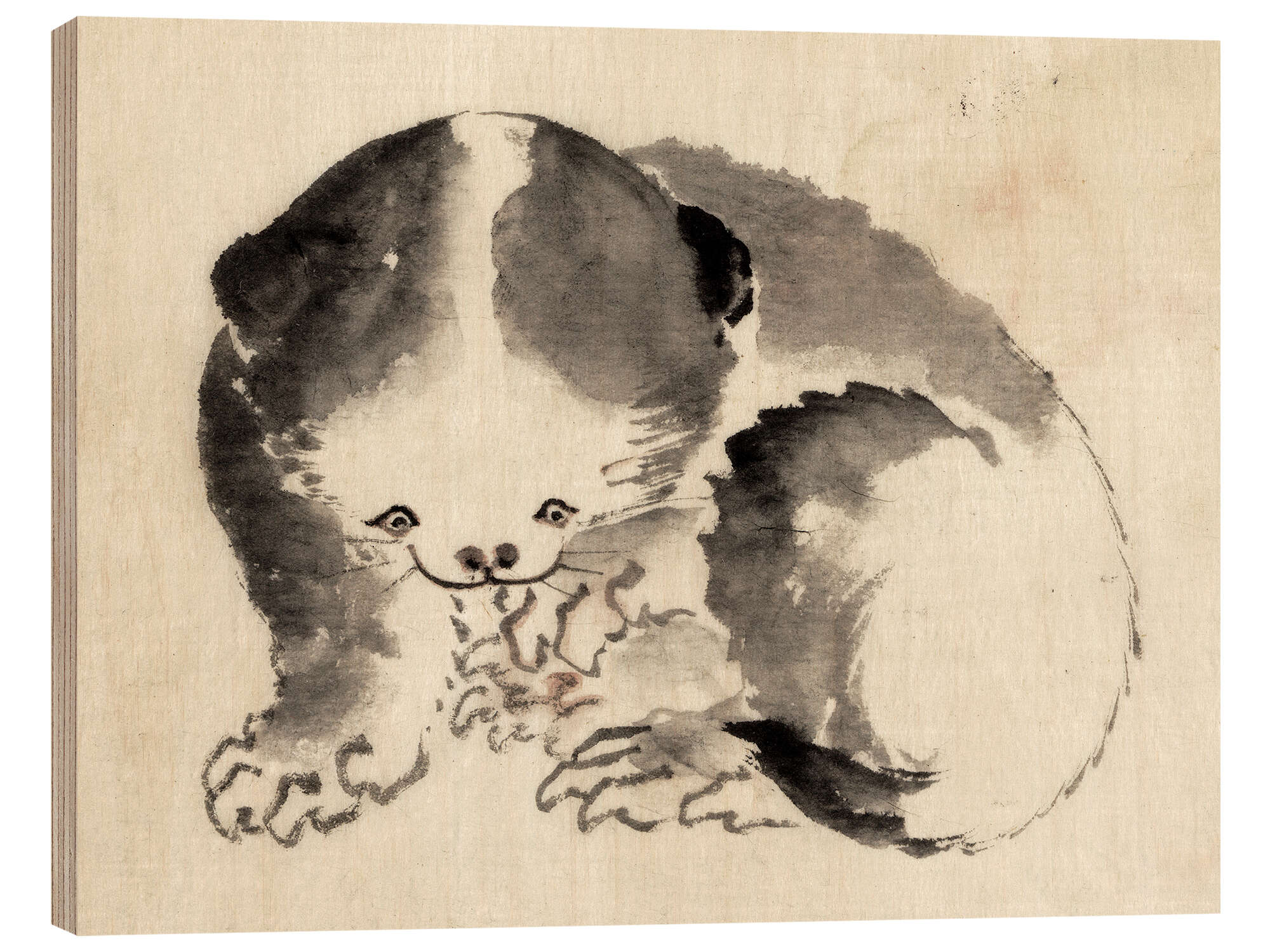 Posterlounge   Wandbilder   Schwarz-Weiß   Katsushika Hokusai   Holzbild Dickes Kätzchen
