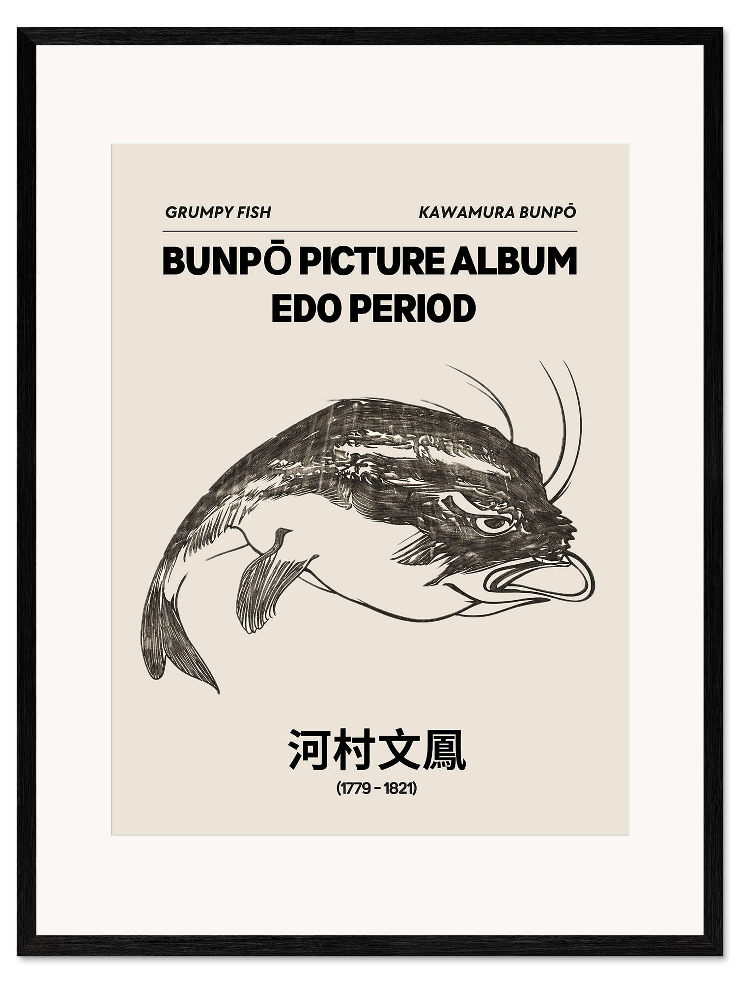 Posterlounge   Wandbilder   Malerei   Asiatische Kunst   Kawamura Bunpō   Gerahmter Kunstdruck Bunpō Gafu - Grumpy Fish
