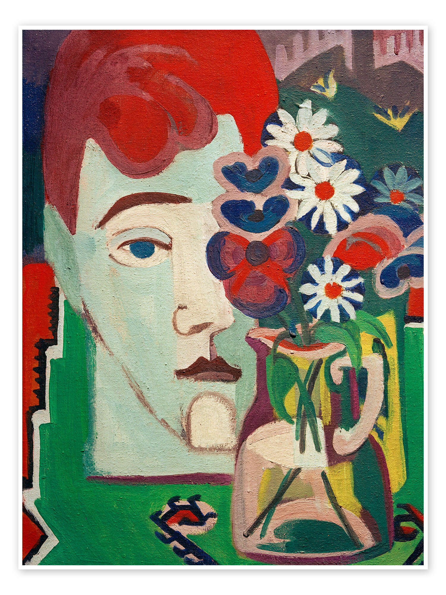 Posterlounge   Wandbilder   Malerei   Expressionismus   Ernst Ludwig Kirchner   Poster Müllers Kopf mit Blumen, 1927