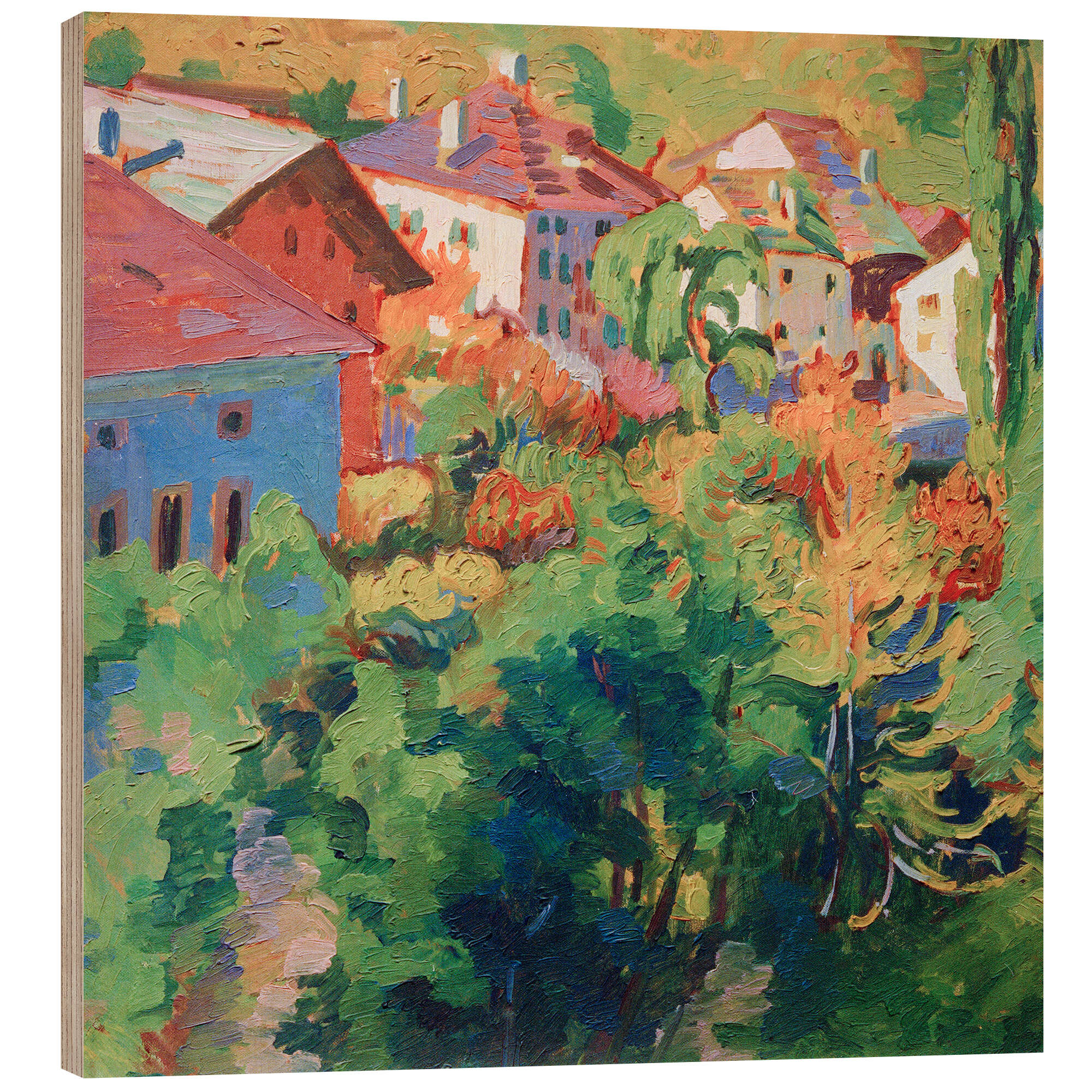 Posterlounge   Wandbilder   Grün   Giovanni Giacometti   Holzbild Sonnenbeschienene Häuser in Stampa, 1912