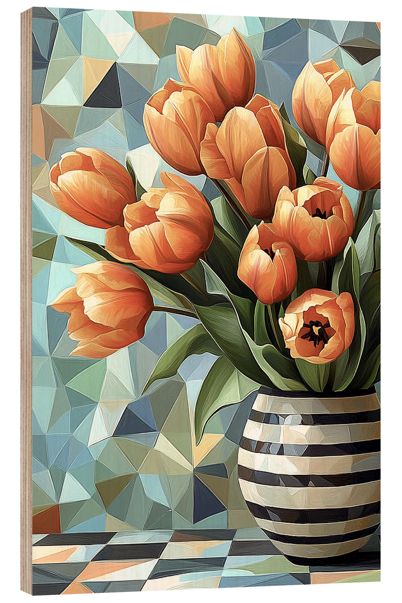 Posterlounge   Wandbilder   Blumen   Tulpen   Maria Tuzhilkina   Holzbild Orangefarbene Tulpen in einer Vase
