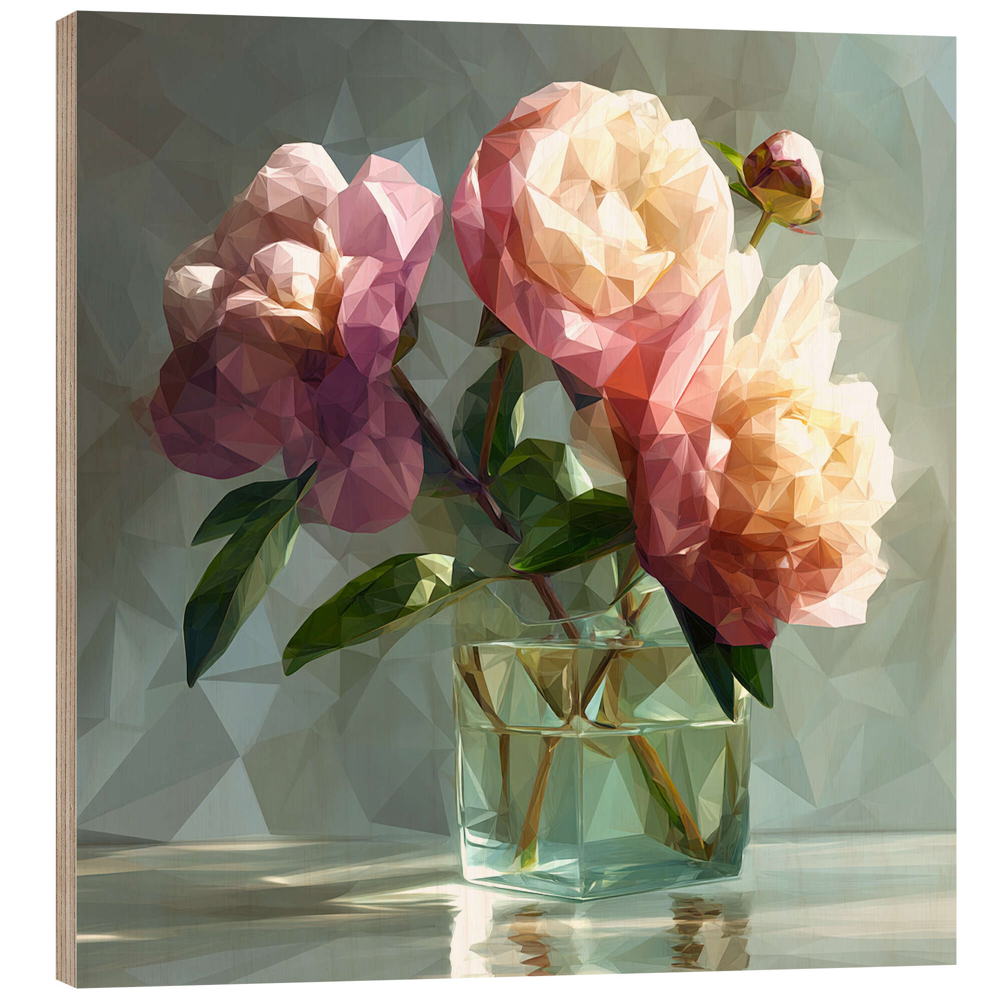 Posterlounge   Wandbilder   Digitale Kunst   Maria Tuzhilkina   Holzbild Rosa Pfingstrosen in einer Glasvase