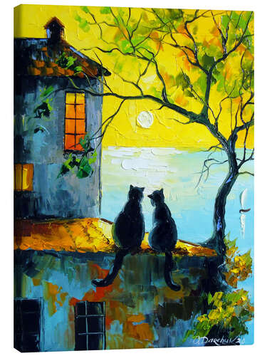 Posterlounge   Wandbilder   Tiere   Haustiere   Katzen   Olha Darchuk   Leinwandbild Katzen beobachten gemeinsam den Sonnenuntergang