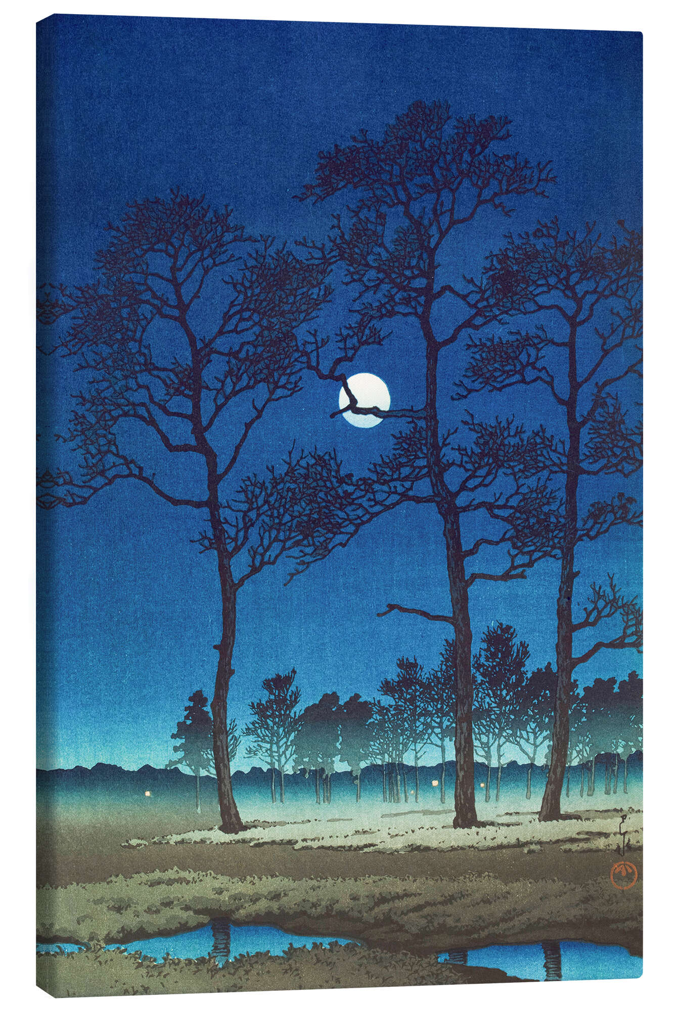 Posterlounge   Wandbilder   Malerei   Asiatische Kunst   Kawase Hasui   Leinwandbild Wintermond über der Toyama-Ebene