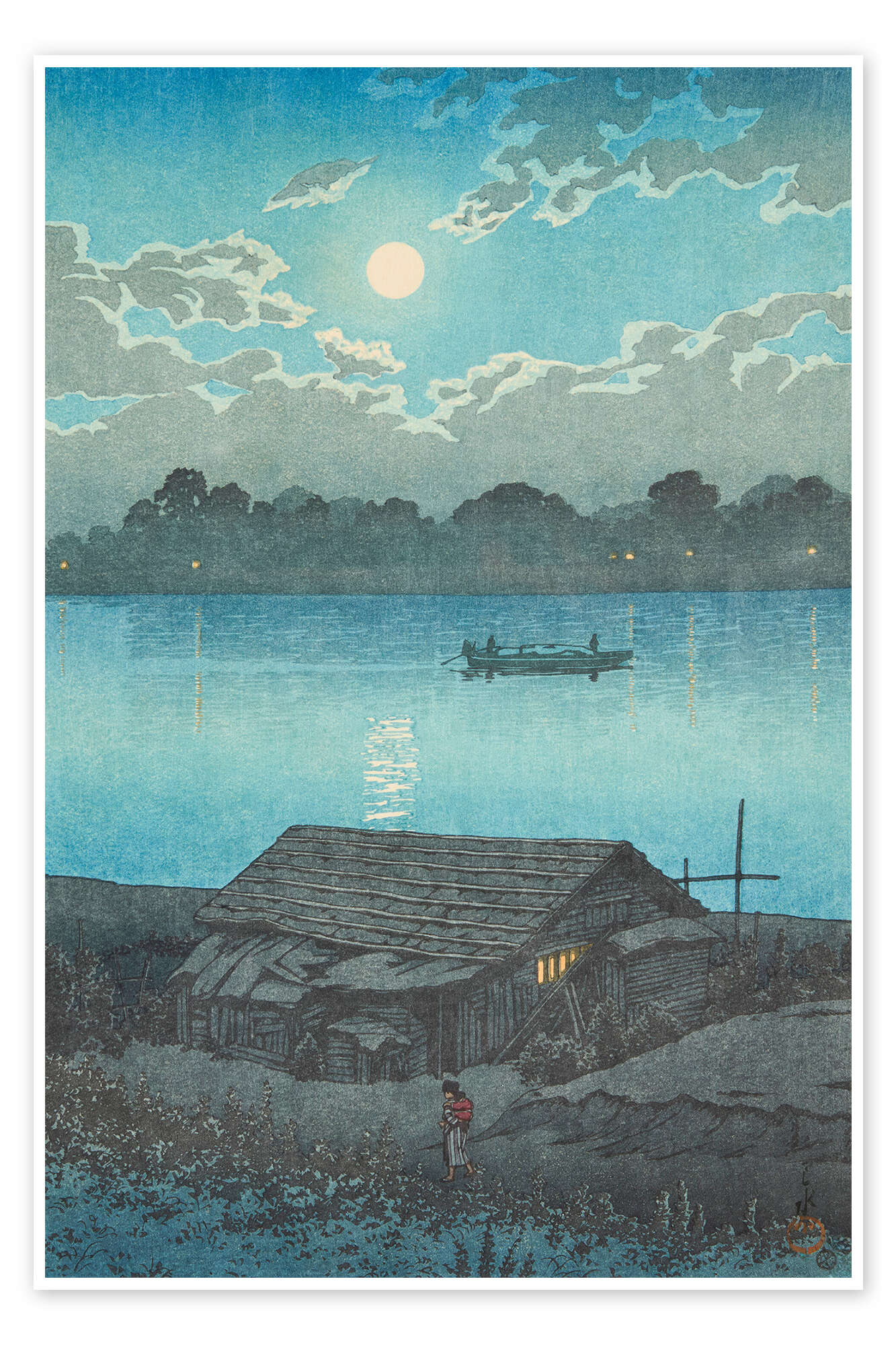 Posterlounge   Wandbilder   Malerei   Asiatische Kunst   Kawase Hasui   Poster Mond über dem Arakawa-Fluss in Akabane, 1929