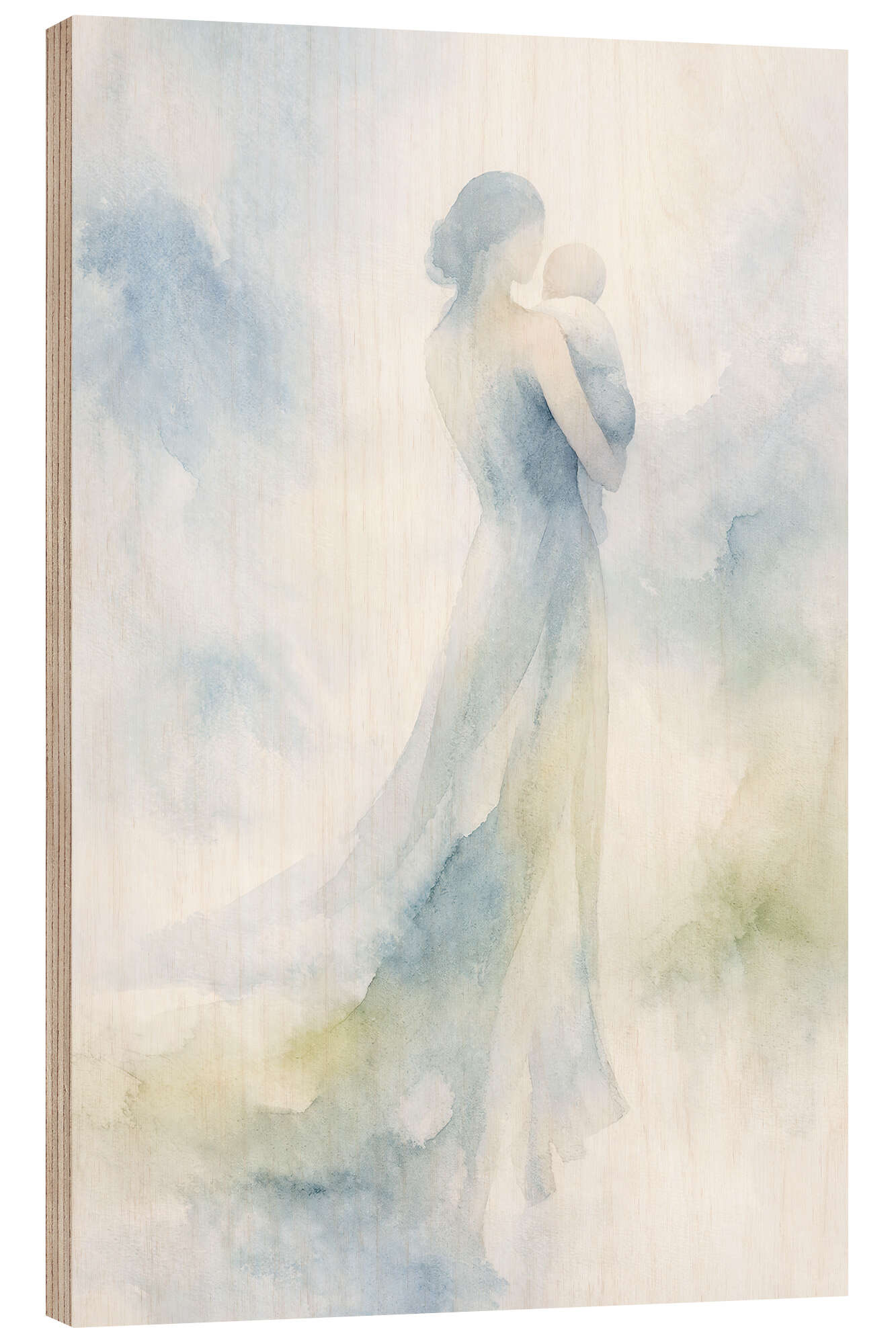 Posterlounge   Wandbilder   Malerei   Aquarell Malerei   Natalie Bruns   Holzbild Mutter mit Baby in zarten Blautönen