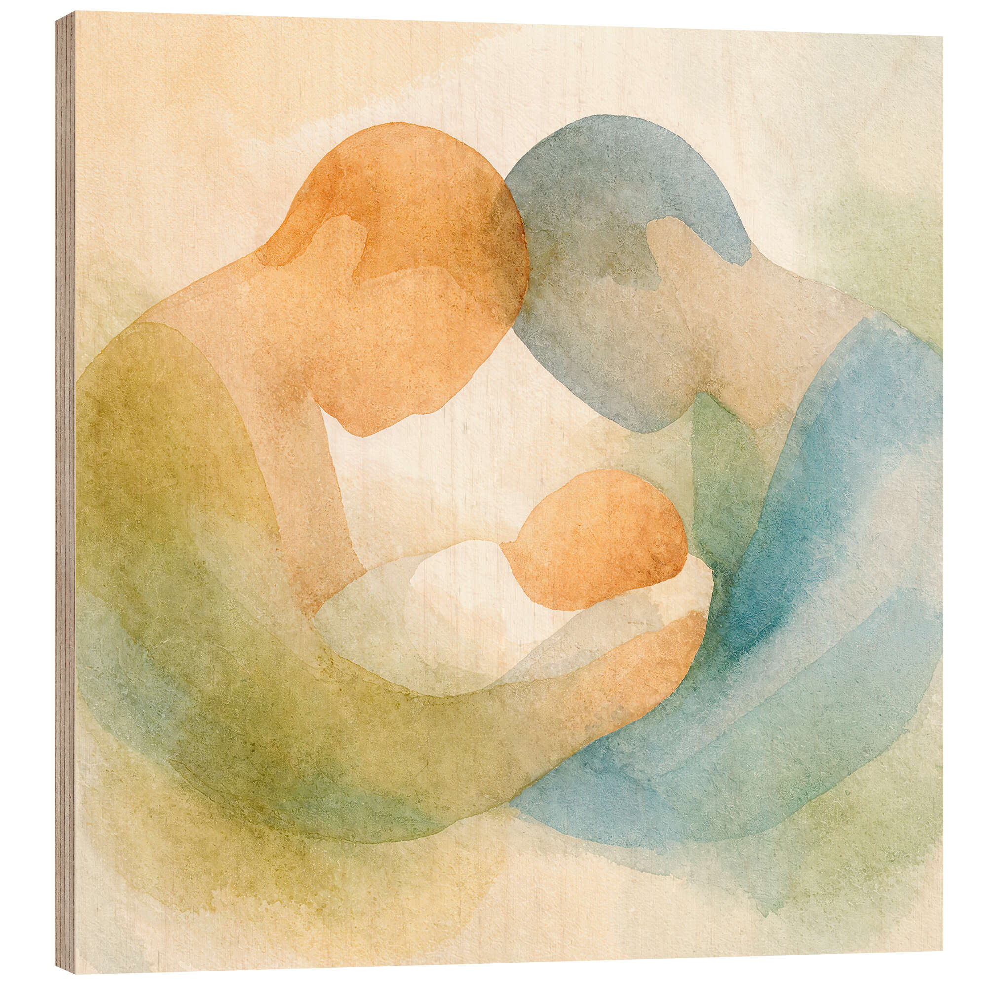 Posterlounge   Wandbilder   Malerei   Aquarell Malerei   Natalie Bruns   Holzbild Väter mit ihrem neugeborenen Baby