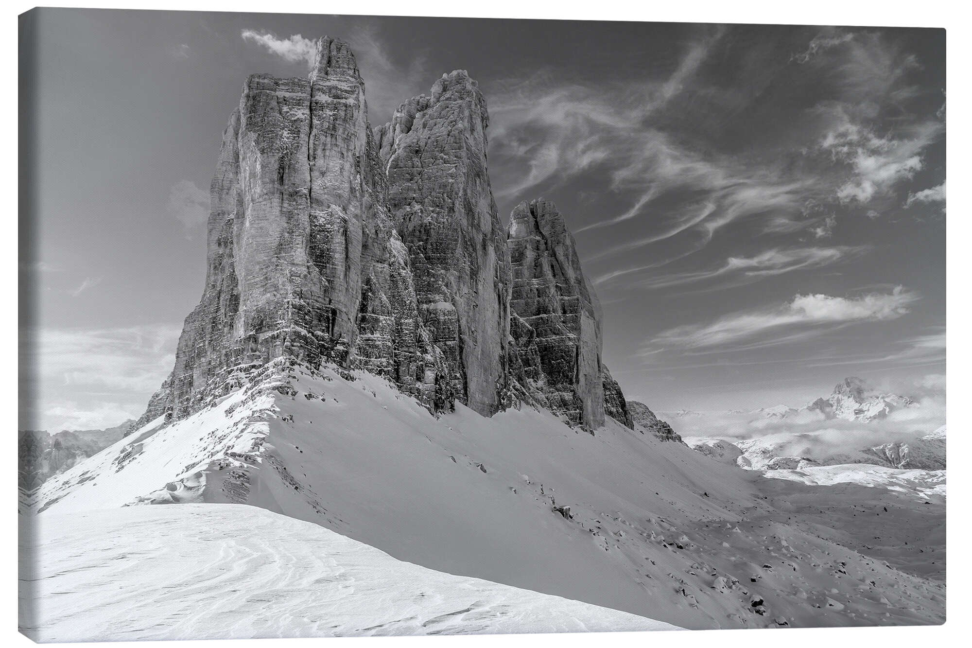Posterlounge   Wandbilder   Schwarz-Weiß   Christian Müringer   Leinwandbild Drei Zinnen in den Sextener Dolomiten, Südtirol