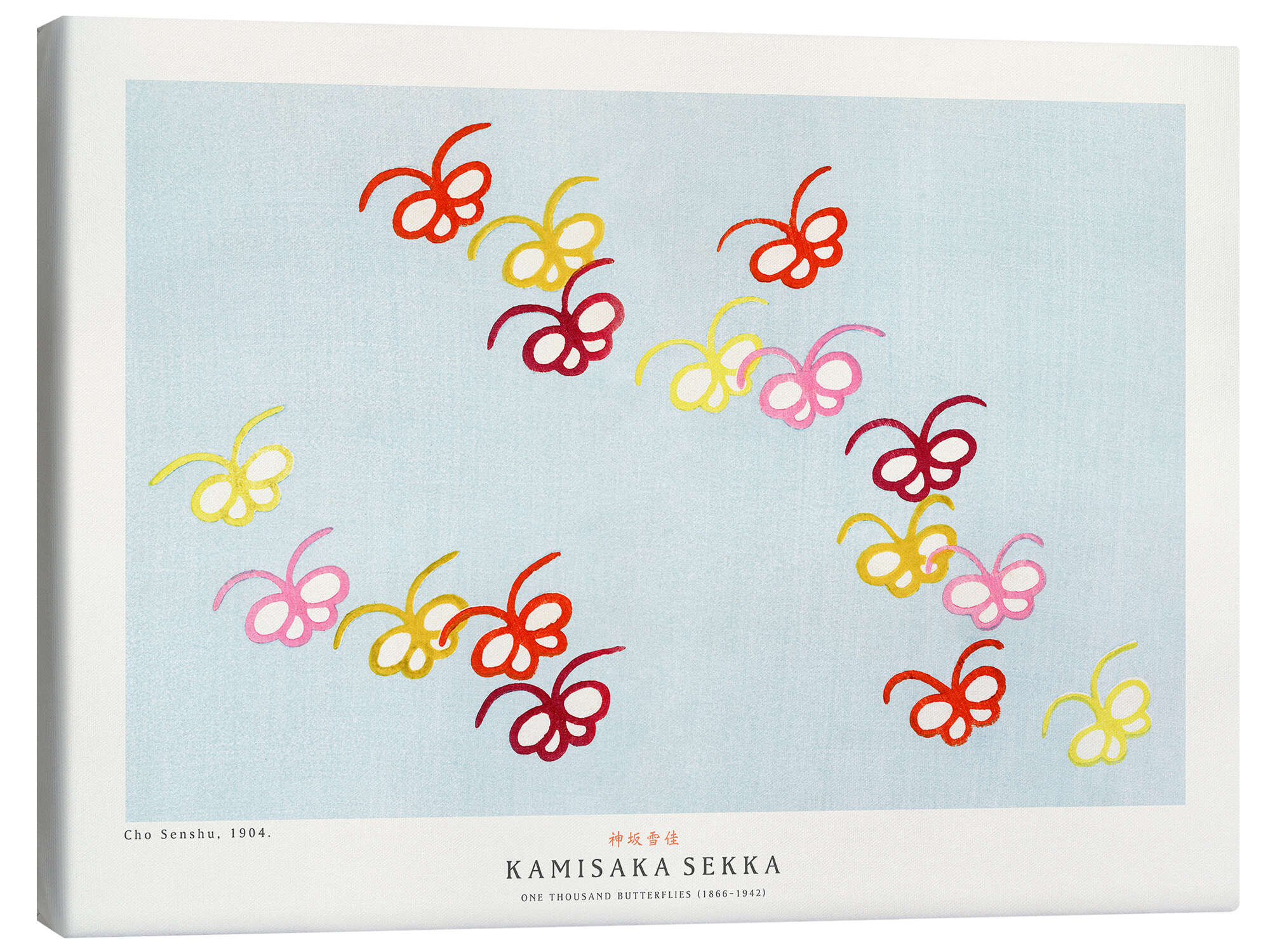 Posterlounge   Wandbilder   Malerei   Asiatische Kunst   Kamisaka Sekka   Leinwandbild Schmetterlinge in Rot, Gelb und Rosa