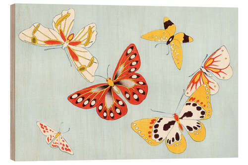 Posterlounge   Wandbilder   Japandi   Kamisaka Sekka   Holzbild Butterflies in Red & Yellow, 1904