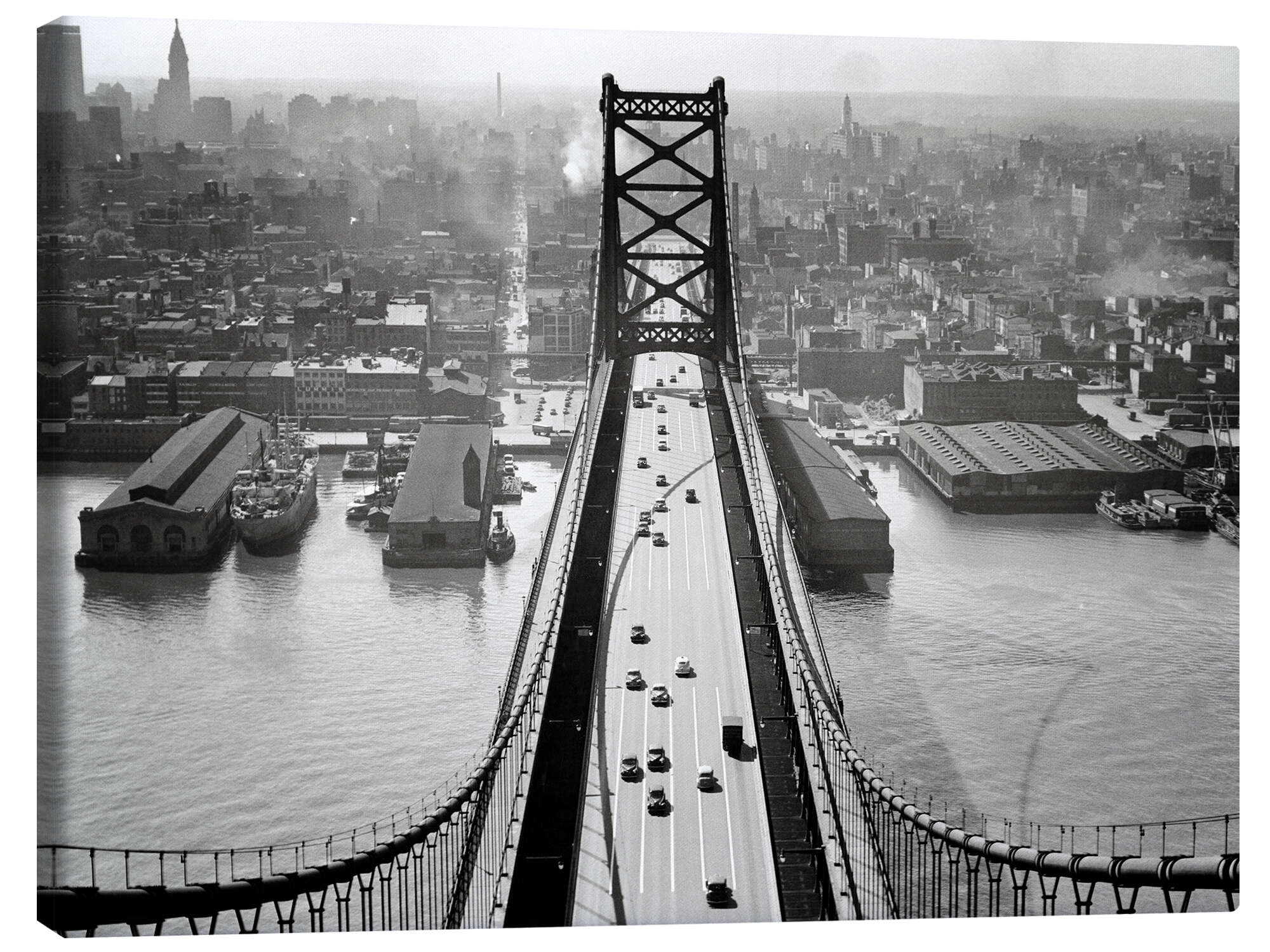 Posterlounge   Wandbilder   Fotografie   Nostalgie   Leinwandbild Benjamin-Franklin-Brücke, von Camden nach Philadelphia, 1950er