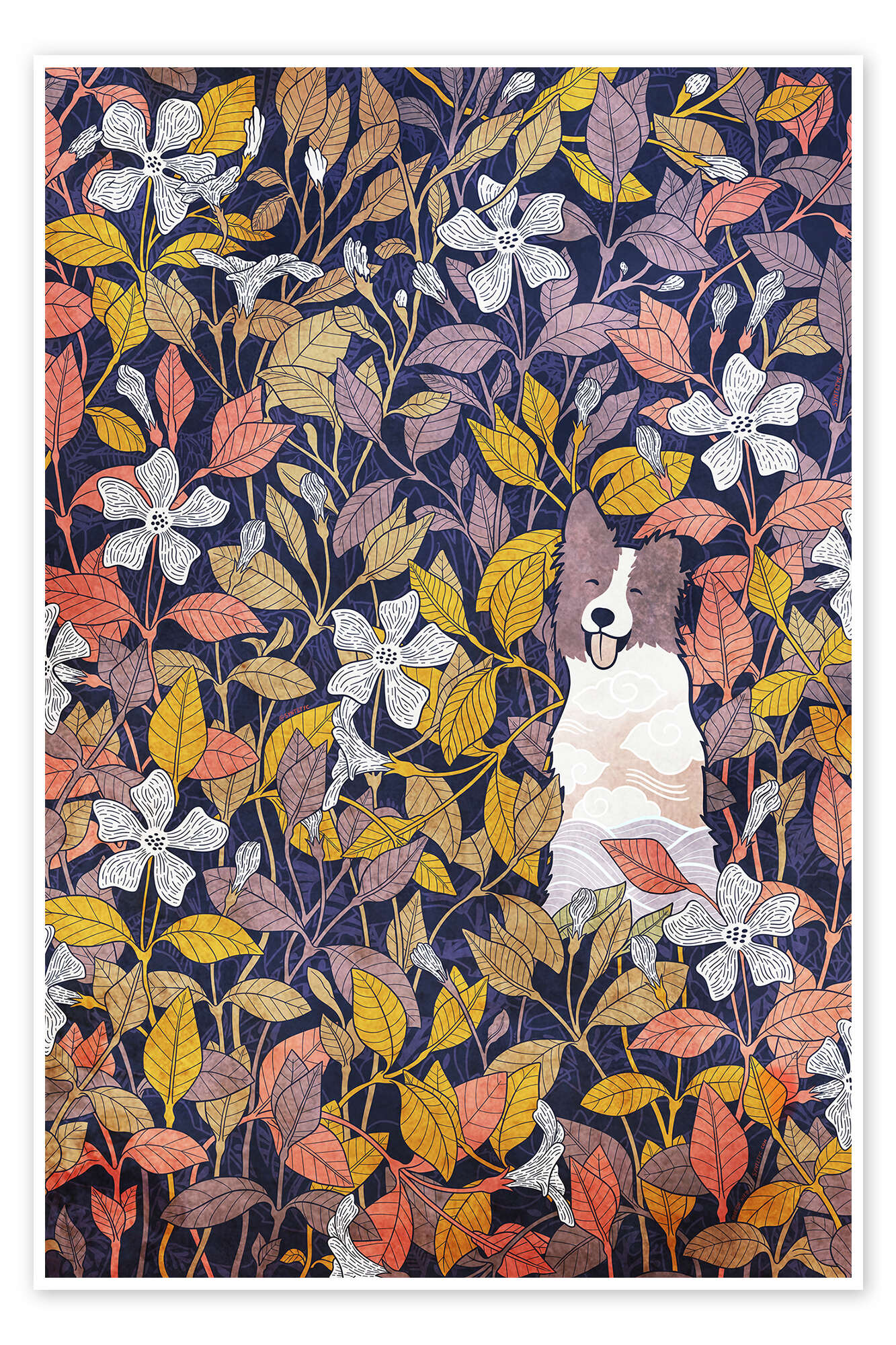 Posterlounge   Wandbilder   Blumen   syntetyc   Poster Border Collie und Blumen