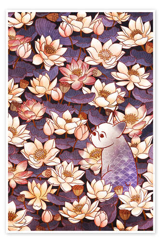 Posterlounge   Wandbilder   Blumen   syntetyc   Poster Französische Bulldogge und Lotusblumen