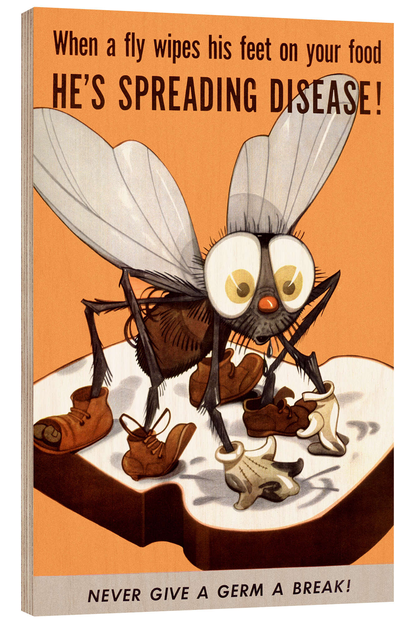 Posterlounge   Wandbilder   Vintage   Vintage Advertising Collection   Holzbild When a fly wipes his feet on your food he's spreading disease, 1944