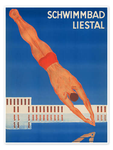 Posterlounge   Wandbilder   Blau   Vintage Water Ski Collection   Poster Schwimmbad Liestal - Otto Plattner