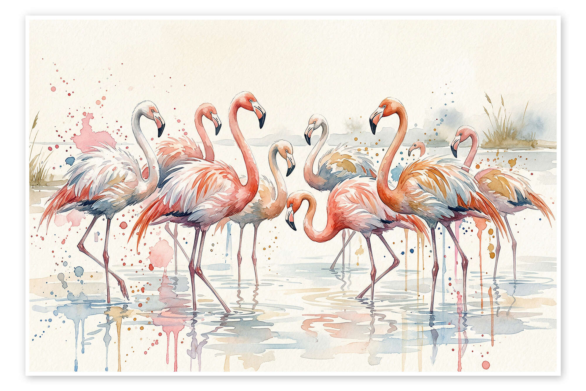 Posterlounge   Wandbilder   Tiere   Vögel   Flamingos   Mango Art   Poster Aquarellflamingos