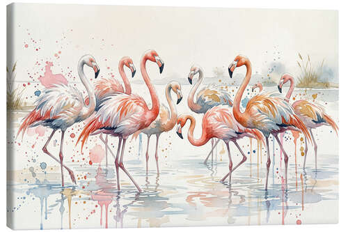 Posterlounge   Wandbilder   Tiere   Vögel   Flamingos   Mango Art   Leinwandbild Aquarellflamingos
