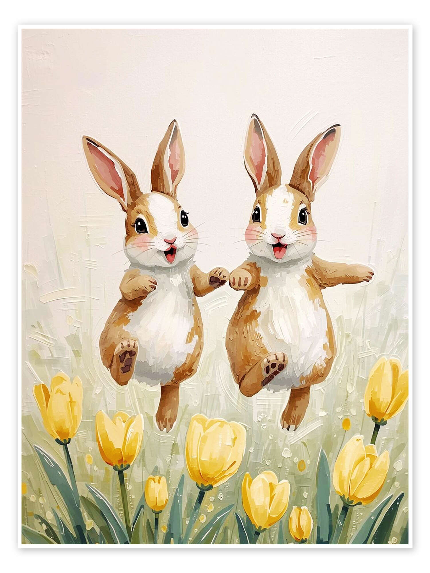 Posterlounge   Wandbilder   Geschenkideen   Ostern   Ohkimiko   Poster Hoppelnde Hasen in Tulpenfeld