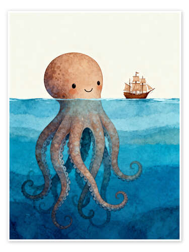 Posterlounge   Wandbilder   Blau   Softlight Boutique   Poster Der freundliche Oktopus