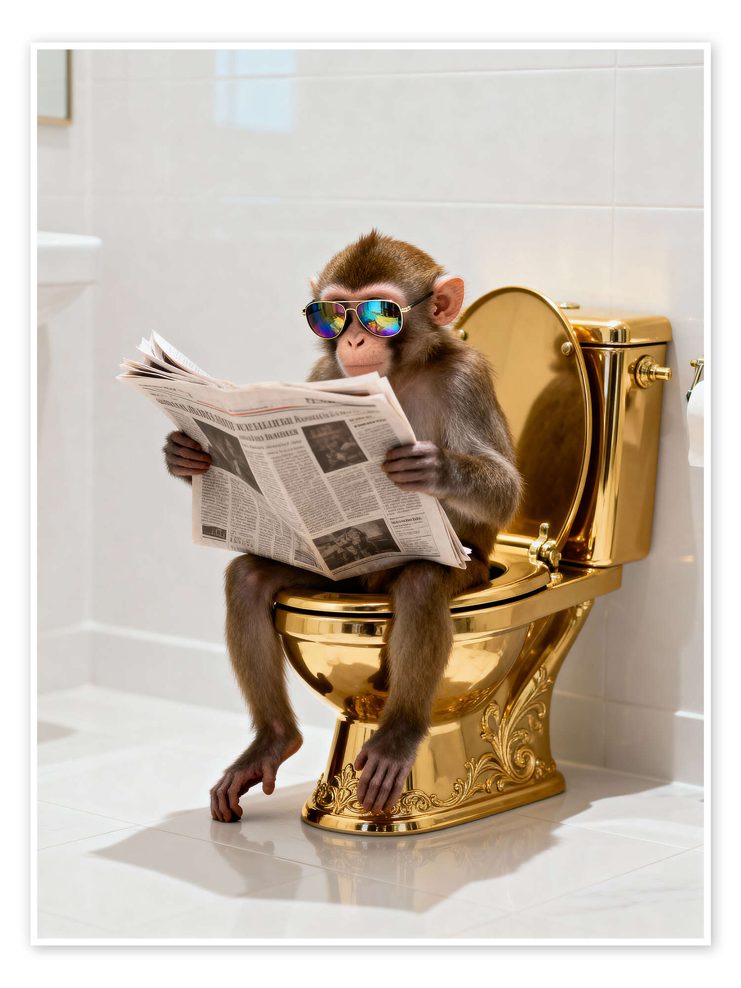 Posterlounge   Wandbilder   Badezimmer   Softlight Boutique   Poster Affe auf der goldenen Toilette